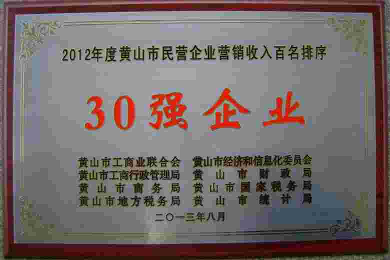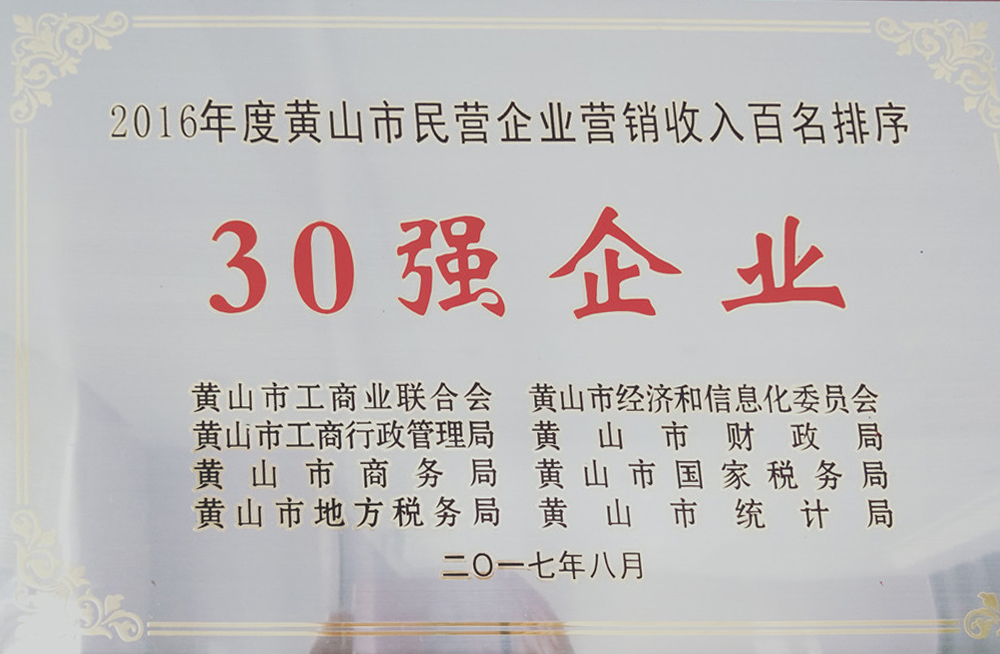 2016年黃山市民營(yíng)企業(yè)營(yíng)銷(xiāo)收入30強(qiáng)